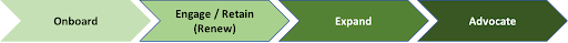 - Engage / Retain (Renew) – human and digital interactions comingle to create the customer experience. Meet ups, user groups, advisory boards (both customer and product) offer in-person engagement and foster authentic dialog. Technical communities provide digital engagement.